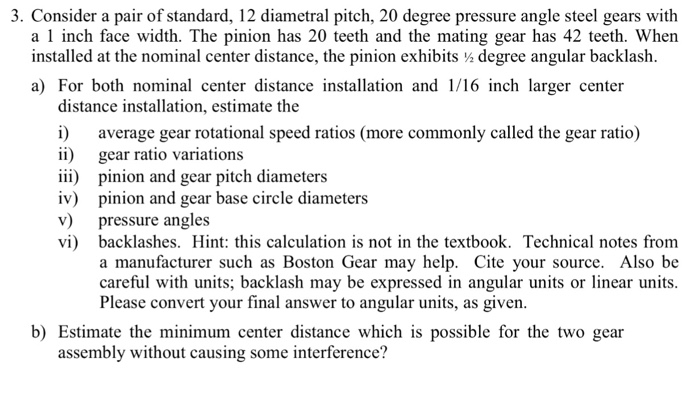 For a 20° pressure angle the distance equals 0.73 times the amount of backlash desired. [3] As a rule of thumb the average backlash is defined as 0.04 divided by the diametral pitch ; the minimum being 0.03 divided by the diametral pitch and the maximum 0.05 divided by the diametral pitch . ... Read Article